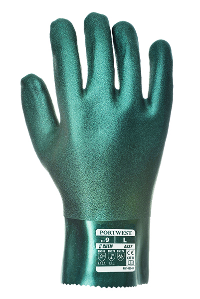 Guanto in PVC a doppio strato con palmo sabbiato per un migliore grip.